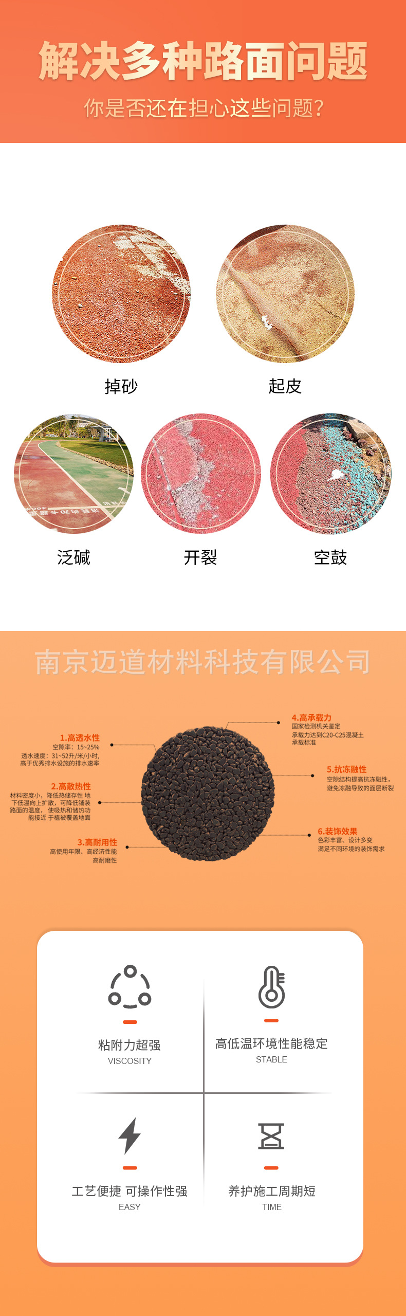 厂家供应 透水混凝土胶结料、冷拌彩色透水沥青、透水胶结料
